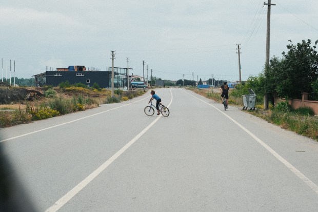 Départ 9 h d’Akçakoca, les transmissions grincent un peu. On décide de s’écarter de la nationale, vaccinés par l’étape de la veille un brin monotone. Dès lors, on se retrouve sur de charmants petits sentiers de campagne, peuplés de noisetiers à perte de vue. Il fait bon. Le ciel légèrement voilé laisse transparaître quelques rais de lumière. Perdus entre les pâquerettes et les noisettes, on est absolument seuls. Même notre voiture-balai est contrainte d’emprunter un itinéraire bis, car les chemins sont trop étroits ou cabossés. On tombe à nouveau sur des portions boueuses. Cela reste de courte durée, mais on devra porter les vélos à plusieurs reprises.
